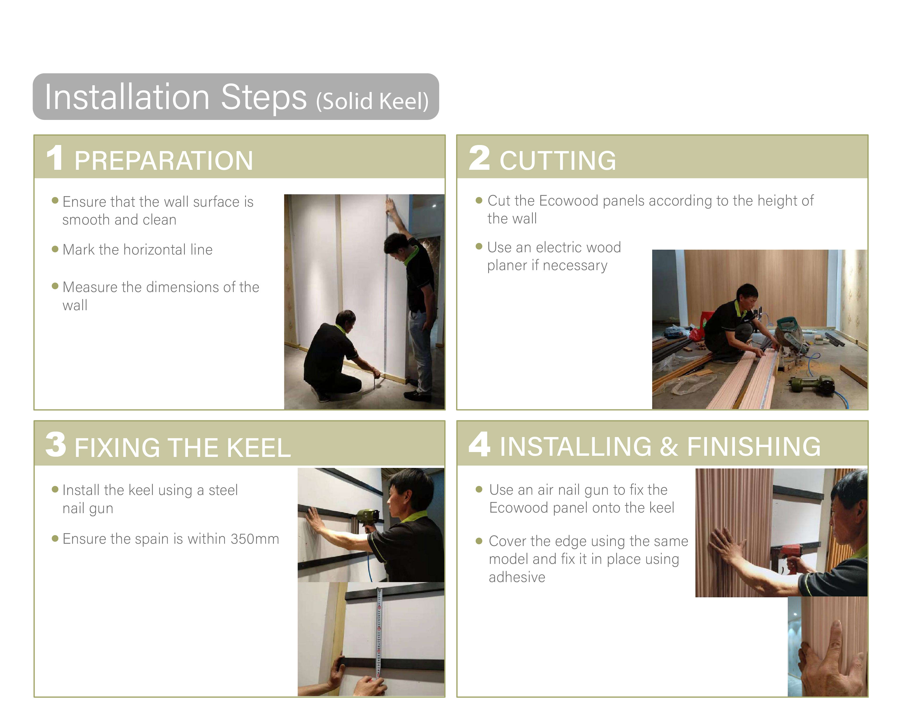 | Ecowood panels are made from a blend of wood powder and plastic particles, effectively avoiding the drawbacks of traditional solid wood. They are lightweight and easy to install. Available in various shapes, this series features a full-body design that prevents the underlying color from showing through even with wear and scratches. Available in 12 solid colors, some models are even bendable. They are waterproof, moisture-proof, and fireproof (EU fireproof certification), with EPD, FSC, and LEED certifications. They are also termite-resistant and formaldehyde-free. Installation is quick and easy, significantly saving labor costs. |