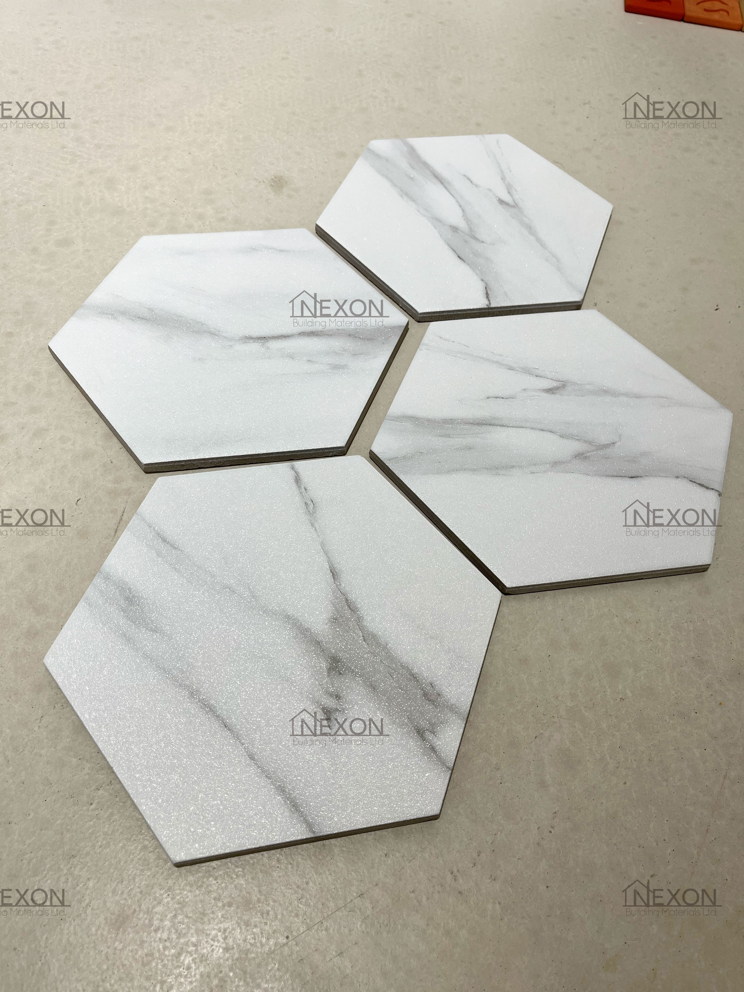 quare-shaped marble pattern tiles are commonly seen, it's time for a new twist! The granular surface refracts light, and each hexagonal tile is randomly imprinted with a subtle marble pattern. Designers can mix and match freely without overwhelming visual complexity. With our in-house mainland procurement team and a strong network of manufacturers, we have served a wide range of clients, including large-scale properties, museums, and restaurants. Feel free to visit our Wan Chai showroom to see the actual products.