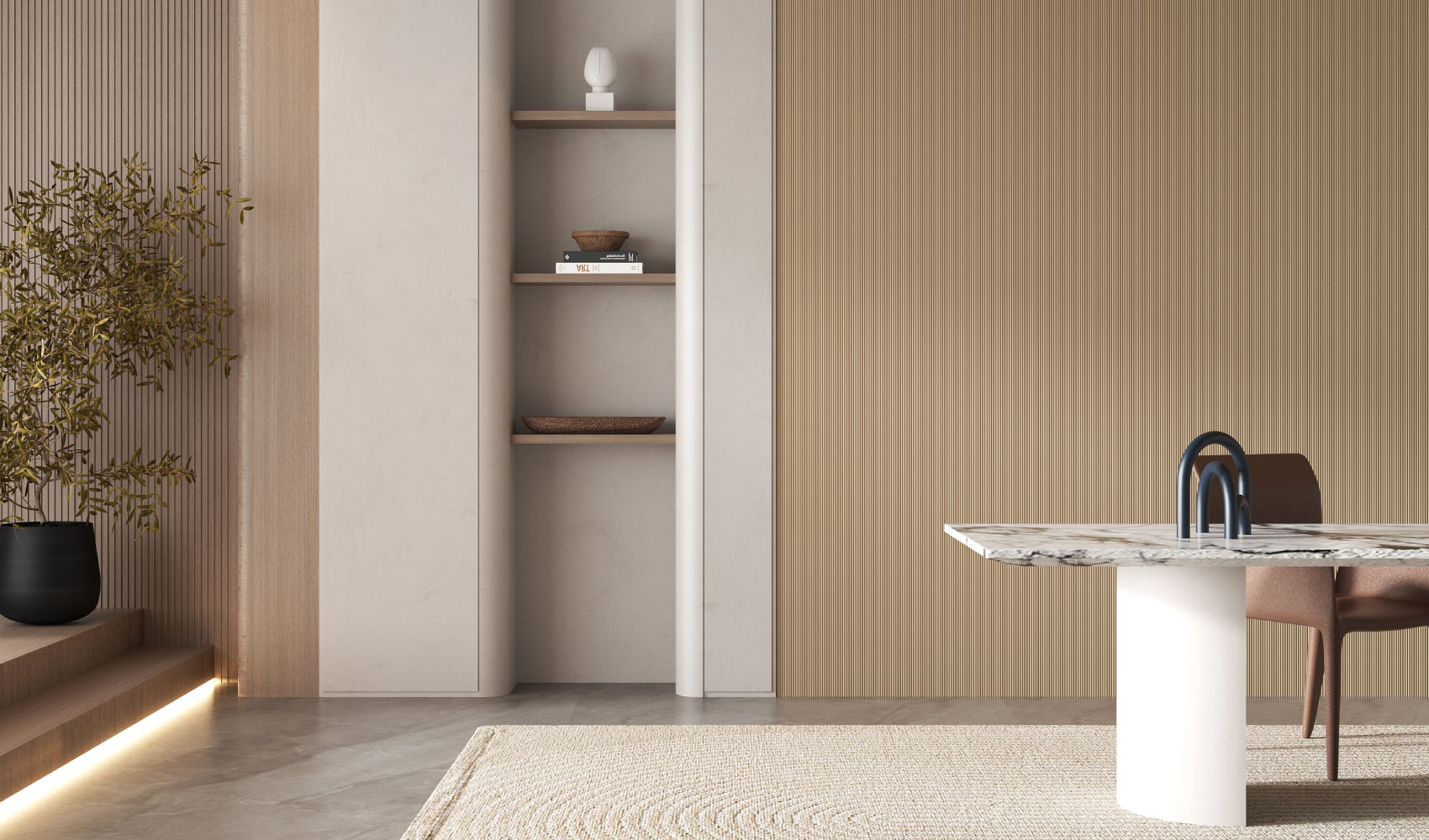 環保木塑板以木粉及環保膠粒混合製成,有效避免傳統實木的缺點:材質輕薄及安裝簡易;顏色為通體一致,共設12款純色,部分型號更可彎曲。主要功能包括:防水、EN級防火、防白蟻及無甲醛釋放等等。產品以組件式發售,安裝只須釘槍及木底板,有效節省工錢。 |
