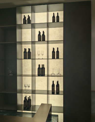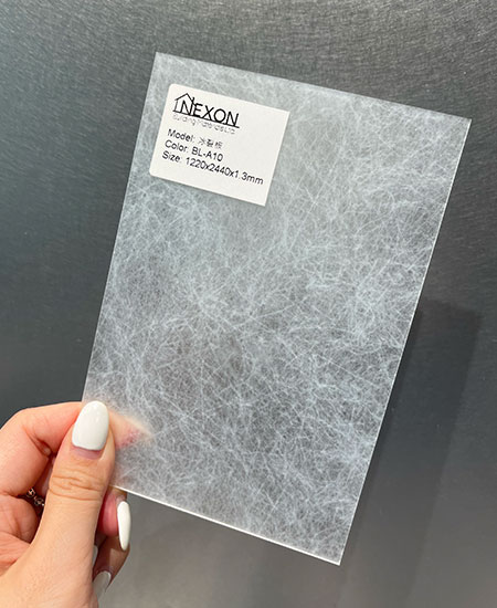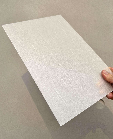 冰裂板採用食物容器級數的PETG塑膠,對人體較安全,而且硬度比亞克力更高。夾層的紙張則印製為圖案,光線穿透後便顯出圖案。材質柔軟易彎,厚度只有約1.5mm,特別適合應用在餐廳及商店等等。 |